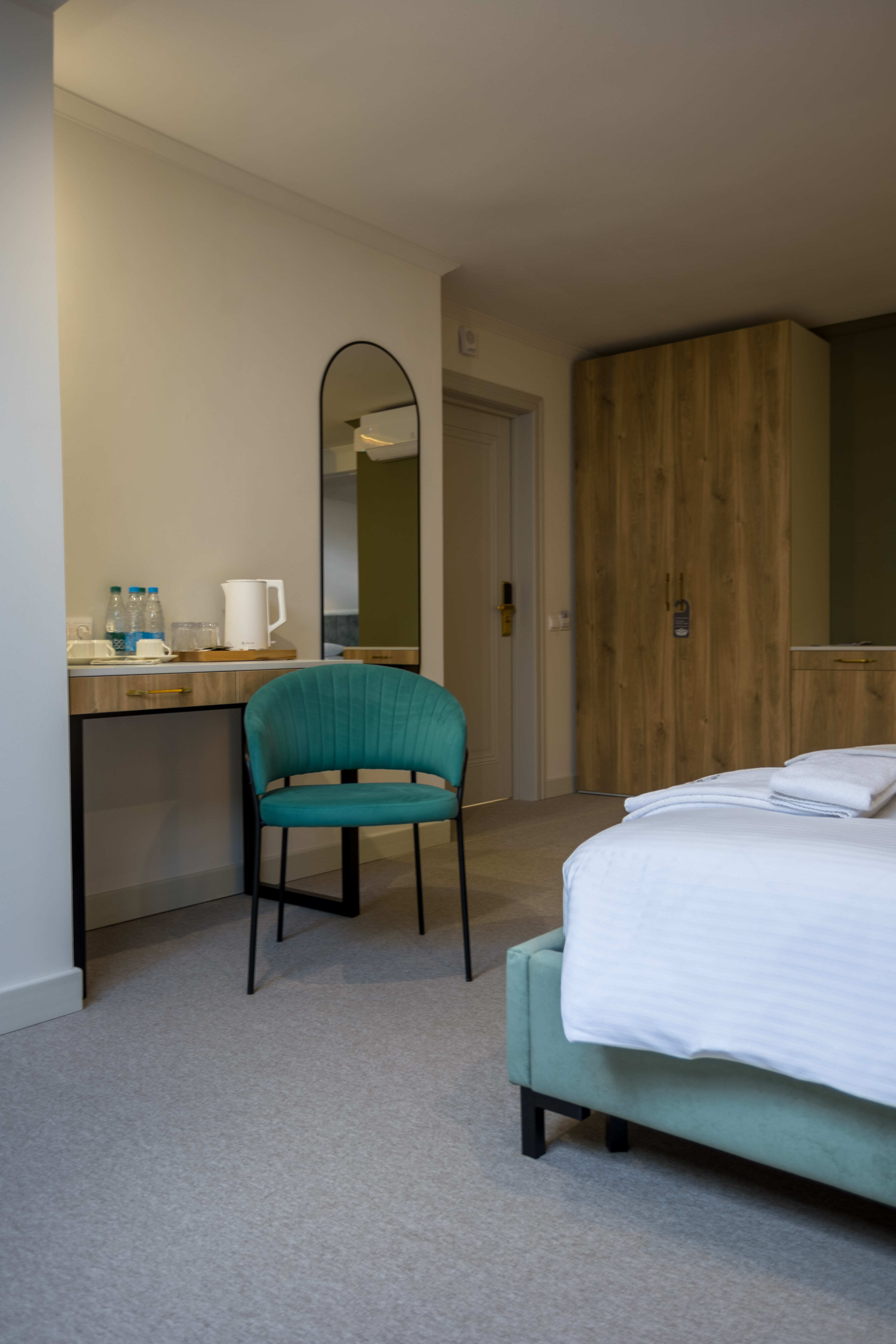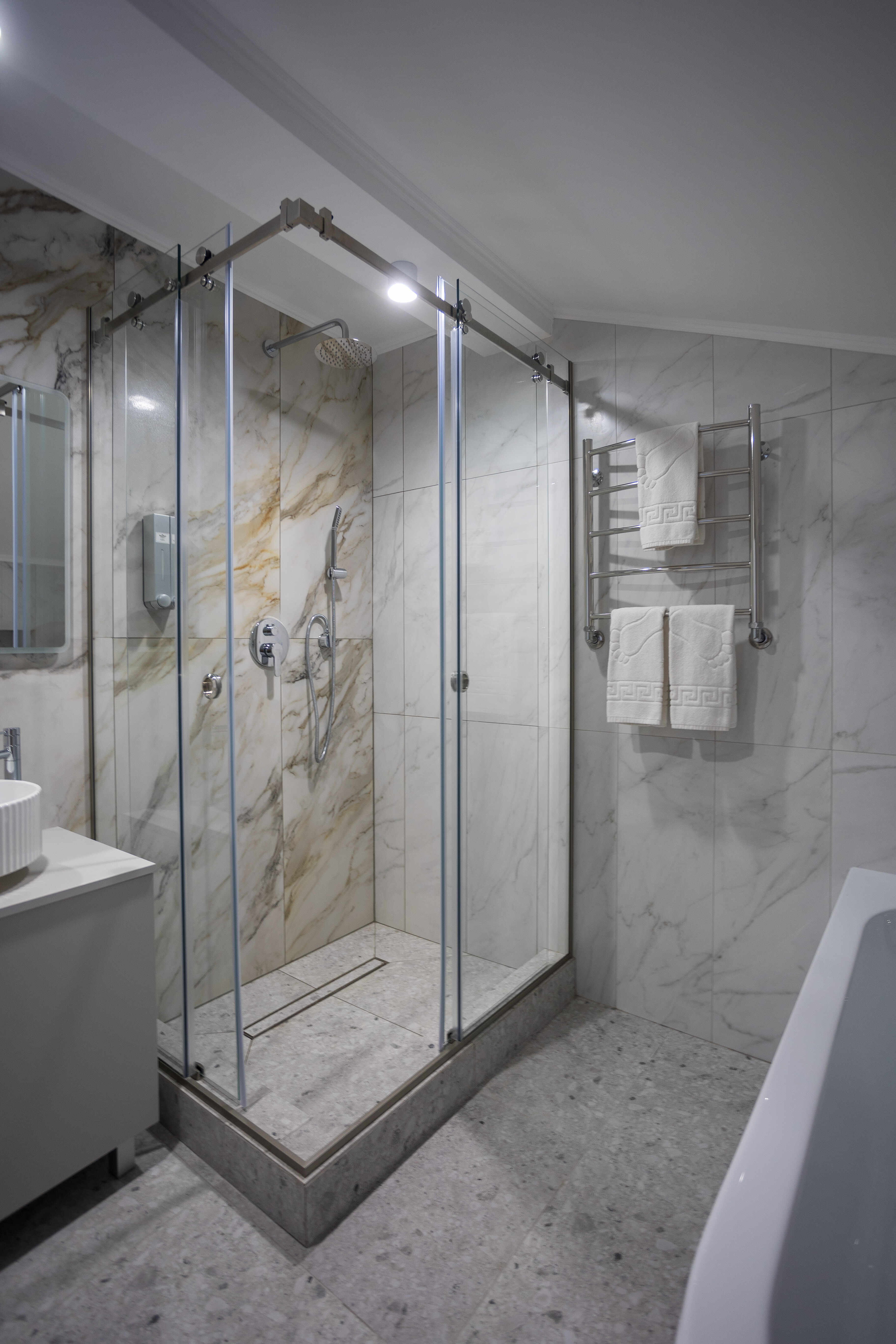 Сочетание цветов, фактур, набора мебели интерьера создают прекрасные условия для комфортного пребывания всей семьи или большой компании. Именно в этом номере, после долгой и приятной прогулки, Вы можно понежиться в ванной. И погрузиться в волшебный сон на нежных турецких простынях.